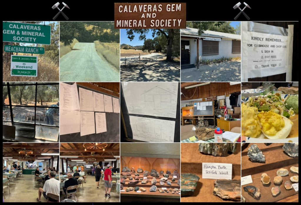 About a week and a half ago on July 21st, a friend and I went to her rock club meeting up in Angels Camp, Calaveras County California. I’m originally from Southern California and belong to two clubs, the Southbay Lapidary & Mineral Society and the Long Beach Mineral & Gem Society. I’m Anna and I live in Lomita, (southern CA) and my friend Tammi lives up in Turlock, CA about halfway up the Central Valley. As a result of the distance between us, we’ve had some fun and interesting trips and I thought I’d write about this one. On this particular Sunday, we went to her club meeting the Calaveras Gem and Mineral Society in Angels Camp, California for a potluck and club meeting. They have a potluck every month before their meeting and yes, I’m a bit jealous. The contrast between gem societies in the city and in the country is interesting. Instead of congested roads and freeways, we drove down country roads and then finally dirt roads to get to their clubhouse. Their clubhouse is a work in progress, they have their meeting hall and workshop, etc. and now they are building a craft pavilion and have volunteer workdays to work on it along with their other goings on that happen each month. At the silent auction just before the potluck, I won a piece of art glass for $6. I also enjoyed sitting in on their meeting, and of course the potluck.